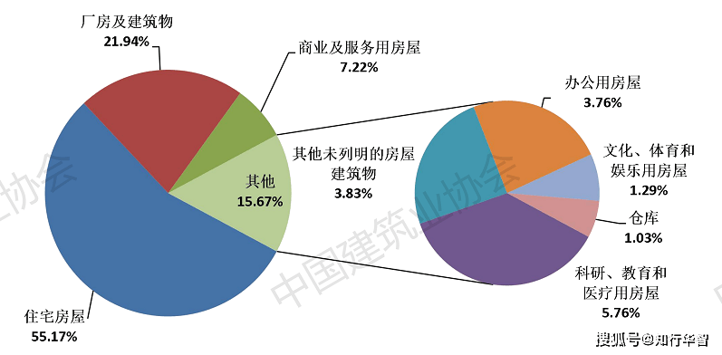 (七)房屋建筑施工面積、竣工面積大幅減少,住宅竣工面積占房屋竣工面積不足六成;從全國建筑業企業房屋竣工面積構成情況看,住宅竣工面積占最大比重。
