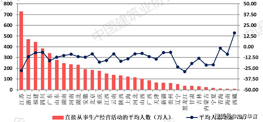 (七)2025年,建筑業直接從事生產經營活動平均人數超過百萬的有18個地區,江蘇省以較大優勢位居首位。西藏較上年增加0.79萬人。