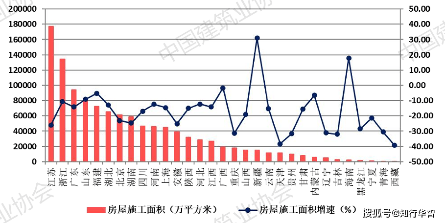 2025各地區建筑業企業房屋建筑施工面積及增長情況