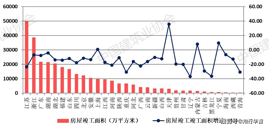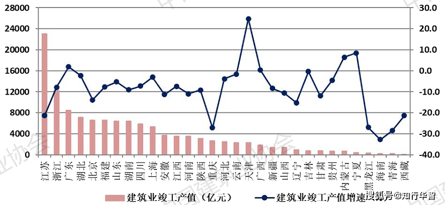 (二)江蘇建筑業竣工產值,雖較上年降低21.28%,但仍以絕對優勢穩居首位。26個地區建筑業竣工產值出現負增長。