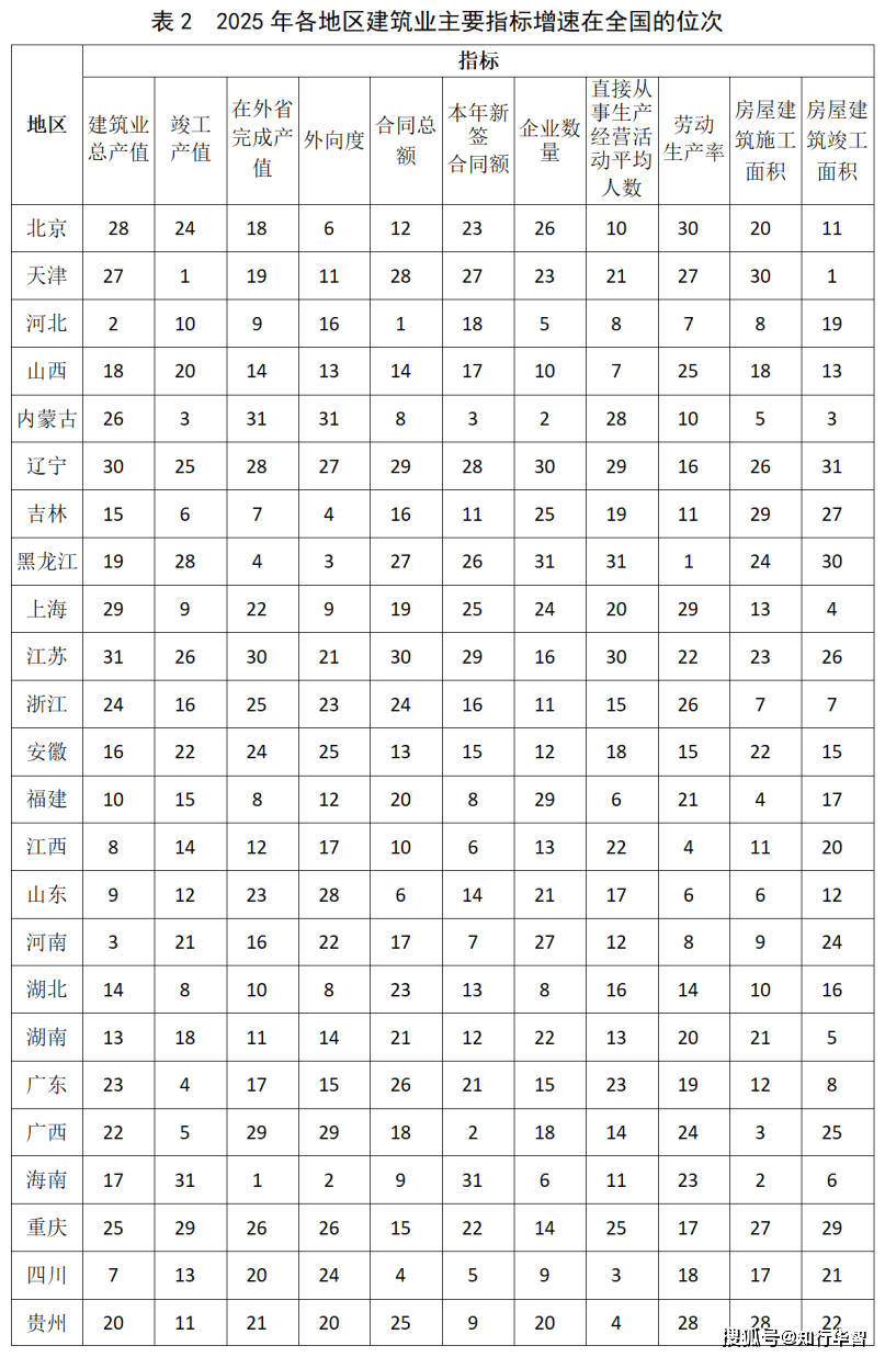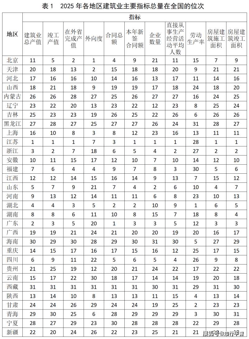 (十一)2025年,各地區建筑業主要指標總量及增速在全國的位次。