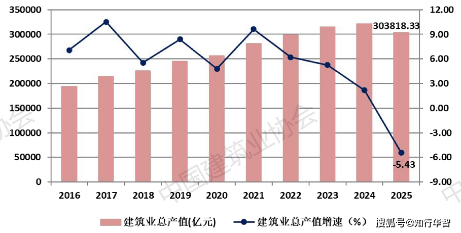 (二)近年來,隨著我國建筑業企業生產和經營規模的不斷擴大,建筑業總產值持續增長,2025年首次出現下降。